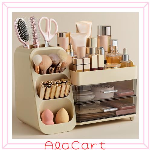 ■hblife コスメボックス メイクボックス コスメ収納ボックス メイク収納ケース 化粧品 収納ボックス 仕切り 引き出し付き 小物入れ 口紅、