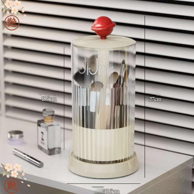 ■ワンタッチ メイクブラシ収納ケース メイクブラシスタンド 回転 大容量 仕切り ふた付き メイクブラシ立て メイクブラシ 収納ボックス コ