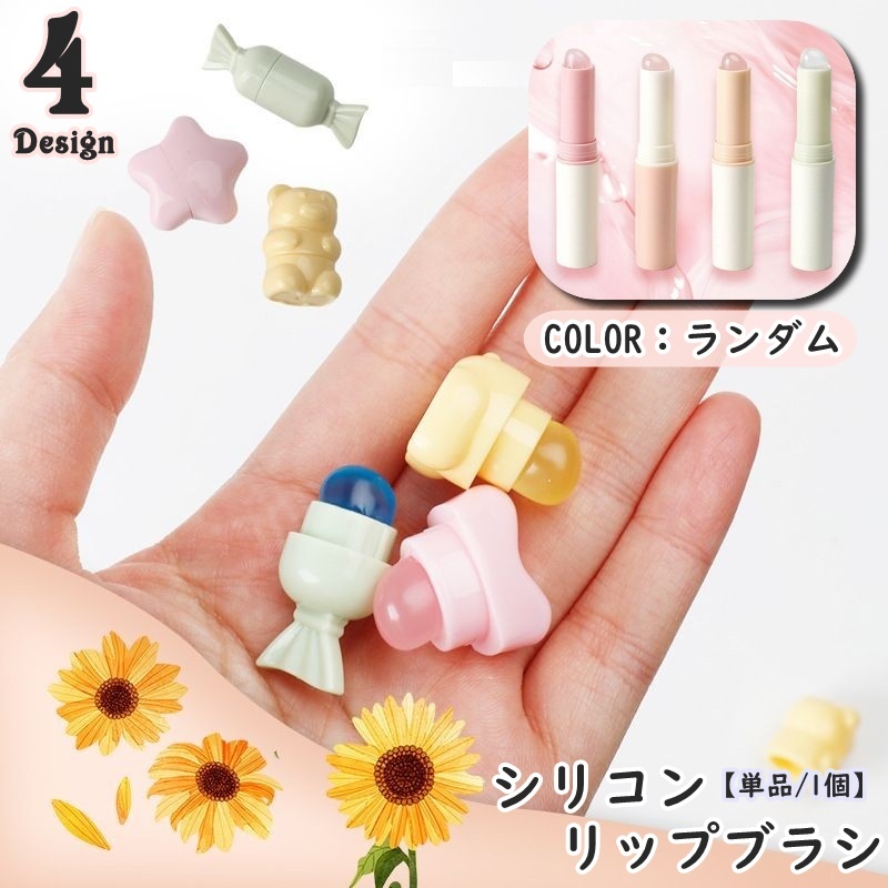■リップブラシ メイクブラシ 単品 1個 フタ付き キャップ付き シリコン ランダム レディース 女性 婦人 女の子 小さめ 小さ