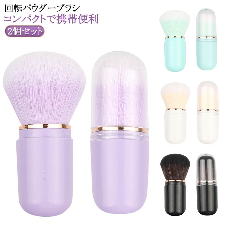 ■回転パウダーブラシ パウダーブラシ 伸縮式 携帯用 キャップ付き 2個セット メイクブラシ スライド式 ミニ コンパクト メイク直し メイク
