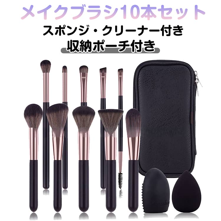 ■クリーナー 柔らかい 10本セット 収納ポーチ付き メイクブラシ メイクブラシセット 化粧ブラシ アイシャドウブラシ セット メイクスポン
