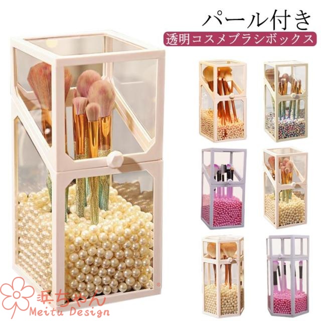 ■メイクブラシ収納ボックス メイクブラシ パール付 クリア メイクブラシケース メイクブラシスタンド 化粧ブラシホルダー メイクブラシ入