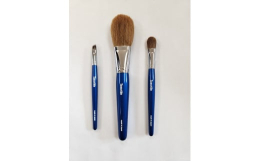 コロナ禍において、マスクを着用されている方が多いため、目元のメイクに視点を当てました。あまり化粧をされない方、マスクをつけており目元しかメイクをされない方にぴったりなセットです。チークとアイシャドウは山羊(粗光峰)の毛を使用しているため、柔らかくて気持ちよく化粧を載せて頂けます。細光峰ではないかと間違えるほど気持ちがよいです。弊社のアイブロウを使用していただくと、ドウジャコウの毛のため少しづつ眉を書いていただくと失敗しません。眉を大切にされている方にオススメです。また、先がある毛質なのでアイラインにも使用していただけます。アイラインを書いた後に薄くなった毛先で描いていただくと自然で、きれいに線を引くことが出来ます。弊社だけしかないドウジャコウの毛は、コシがあるのに先がありアイ