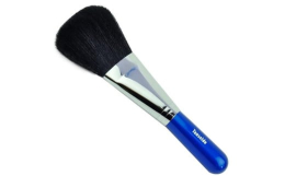 粗光峰(山羊)の毛を使った、フェイスブラシです。扇形で毛量も多く、コシがあります。仕上げに粉を払ったり、フェイスパウダーをのせるメイクをされる方に人気です。 【毛材質】粗光峰黒染(山羊)【全長】15cm【穂先】5cm【重さ】約30gこちらは軸の色が「青」です。 【1】天然毛のブラシは使ったらパウダー成分をティッシュに払ってください。【2】リップブラシは使用後ティッシュで色をふき取りをお願いします。【3】半年に一度はぬるま湯にシャンプーを溶かして洗い、リンスで仕上げて毛並みをそろえて乾かしてください。※中性洗剤で手洗いのみ※開封後、若干、毛が抜けます。使用すると摩耗していきます。手作りですので、毛丈の長さ、大きさは1本1本形が違