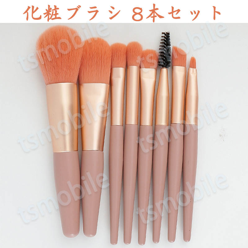 ■メイクブラシ 8本セット オレンジベージュ色 化粧ブラシ ファンデーション コンシーラー フェスパウダー チーク リップ アイシャドウチッ
