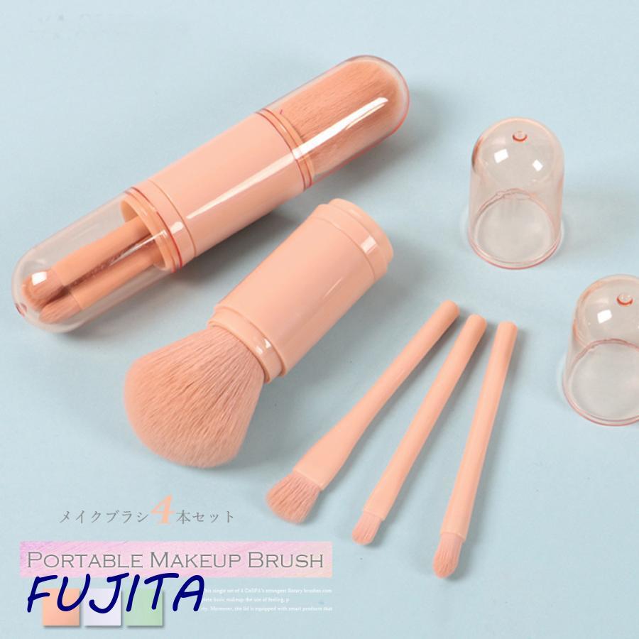 ■携帯用 化粧ブラシ メイクブラシセット 4本 makeup brush メイクブラシ メイク パウダーブラシ アイシャドウブラシ アイホールブラシ 収