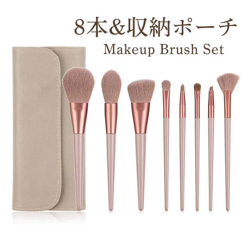 ■メイクブラシセット メイクブラシ 8本入り ポーチ付き パウダーブラシ ファンデーションブラシ アイブロウブラシ 美肌 斜めカット