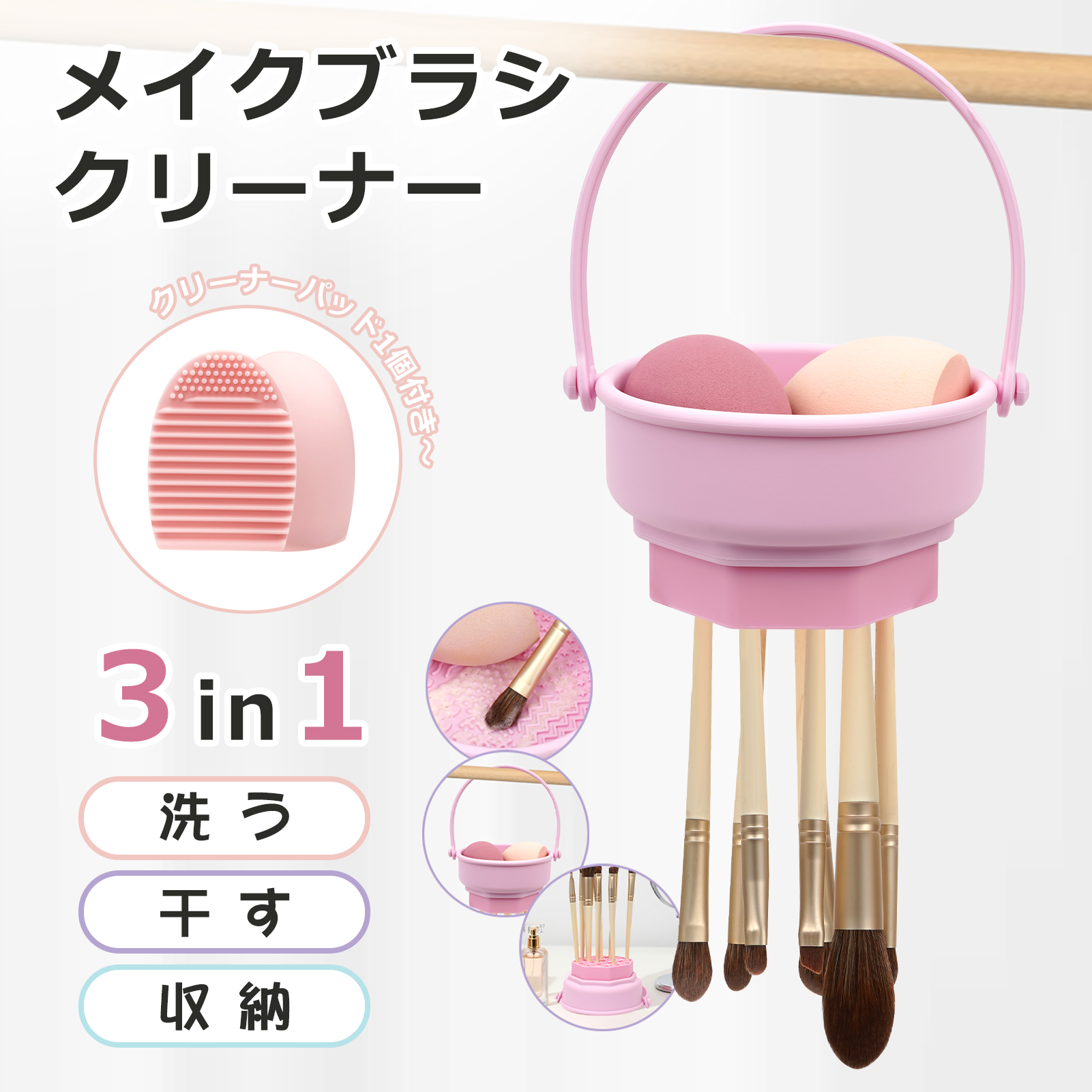 ■メイクブラシクリーナー 3in1 スタンド 洗浄・乾燥・収納 シリコン 洗う 干す メイクブラシ スポンジ パフ 対応 おしゃれ コンパクト メ
