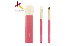 熊野町で育まれた筆づくりの技術を活かして作成したブラシの3本セットです。 肌あたりも良好で、尚且つ発色も良いので、メイクの仕上がりが良くなったとのお声を頂くことが何より励みになります。女性にとって、メイクの仕上がりがうまくいった日は、その日一日自信をもって過ごせますので、少しでもそのお手伝いが出来ればと日々感じながら筆を作っております。良質の山羊毛、馬毛を使用していますので、コシがあり発色も良好です。ご自宅用、持ち運び用として人気のポイントメイク用3本セットです。携帯用ブラシ:キャップができて、持ち運びに便利な携帯用ブラシ。お出かけ先でのメイク直しにも最適です。良質の山羊毛を使用していますので、肌当たりが良く発色も良好です。アイシャドウブラシ01:発色が良くテクニックいらずで美し