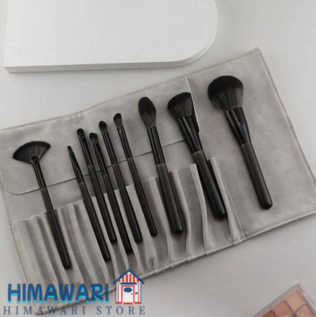 メイクブラシセット 9本 化粧筆 メイクブラシ セット 初心者向き フェイスブラシ メイクグッズ パウダーブラシ ポーチ付き プレゼント おしゃれ やわらかい ブラック グレー 送料無料