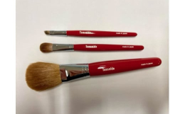 コロナ禍において、マスクを着用されている方が多いため、目元のメイクに視点を当てました。あまり化粧をされない方、マスクをつけており目元しかメイクをされない方にぴったりなセットです。チークとアイシャドウは山羊(粗光峰)の毛を使用しているため、柔らかくて気持ちよく化粧を載せて頂けます。細光峰ではないかと間違えるほど気持ちがよいです。弊社のアイブロウを使用していただくと、ドウジャコウの毛のため少しづつ眉を書いていただくと失敗しません。眉を大切にされている方にオススメです。また、先がある毛質なのでアイラインにも使用していただけます。アイラインを書いた後に薄くなった毛先で描いていただくと自然で、きれいに線を引くことが出来ます。弊社だけしかないドウジャコウの毛は、コシがあるのに先がありアイ