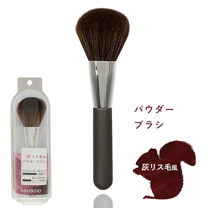 ■灰リス風パウダーブラシ フェイスブラシ メイクブラシ リス風 りす メイク用 ブラシ メイク 化粧筆 粧美堂 SHOBIDO