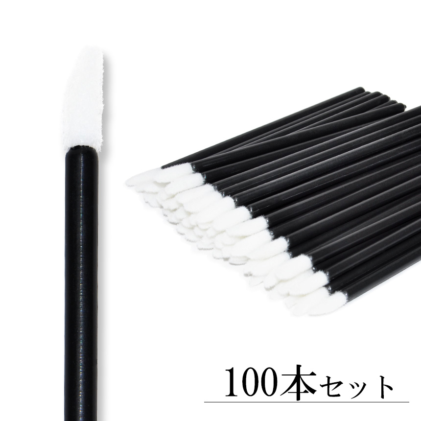 ■リップブラシ 100本 セット 使い捨て 大容量 携帯 持ち運び 業務用 化粧ブラシ メイクブラシ 化粧 メイク ブラック 旅行 出張 小型