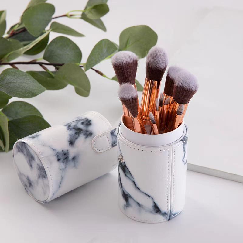 ■メイクブラシ 10本セット 化粧ブラシ 化粧筆 ファンデーションブラシ フェイスブラシ 高級繊維毛 レザー 大理石風 化粧ボックス付き ZB1