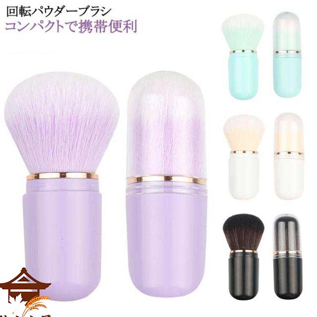 回転パウダーブラシ 携帯用 メイクブラシ パウダーブラシ キャップ付き 伸縮式 スライド式 ミニ コンパクト メイク直し メイクブラシ パウダーブラシ チークブラシ ハイライトブラシ 送料無料