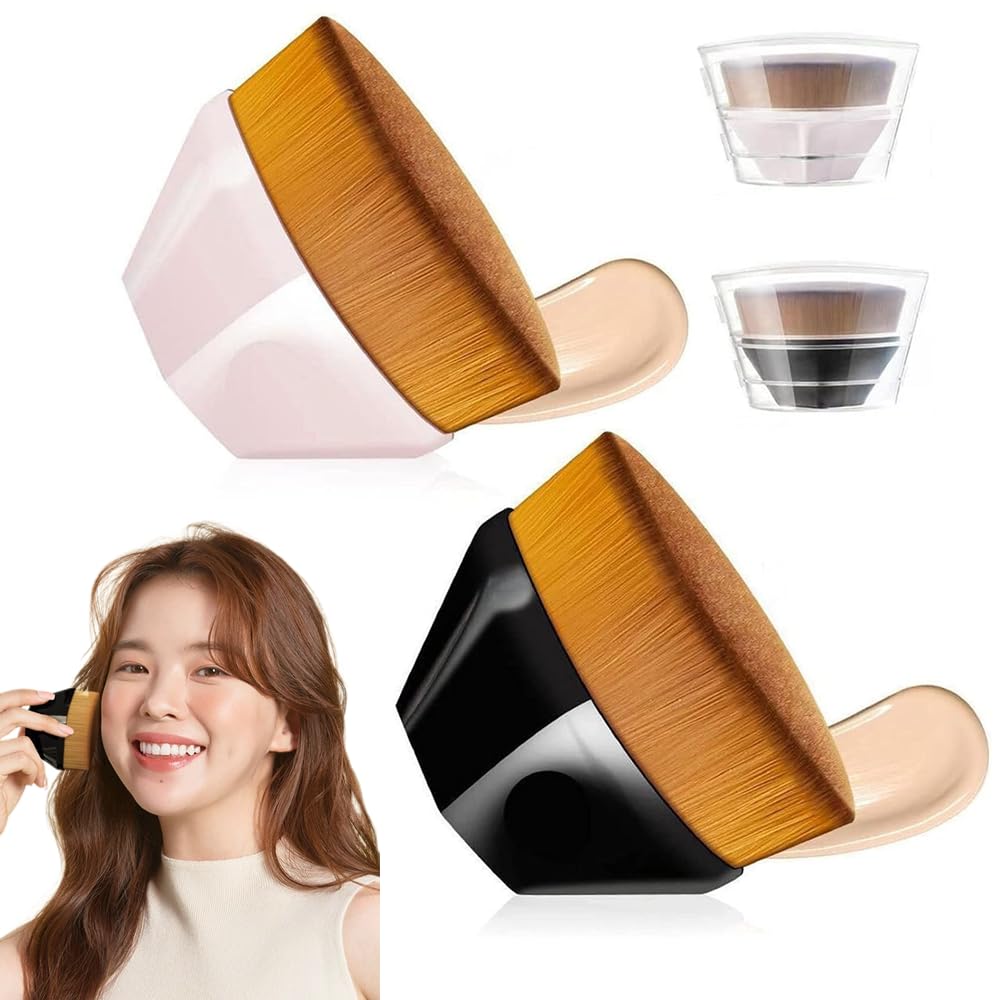 ■2個セット フラットチェンジブラシ メイクブラシ 1個 2個 コンパクト ケース付 持ち運び ふわふわ 敏感肌 ソフト エトヴォス ファンデー