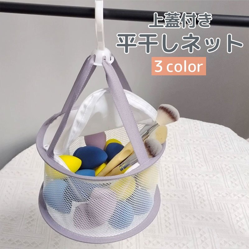 ■平干しネット 物干しネット 上蓋付き 洗濯用品 折りたたみ 型崩れ防止 メッシュ メイクブラシ メイクスポンジ パフ 室内干し
