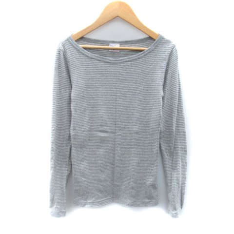 ■【中古】ロバート ピー.ミラー Robert P.Miller カットソー 長袖 ラウンドネック ボーダー柄 F グレー 白 レディース