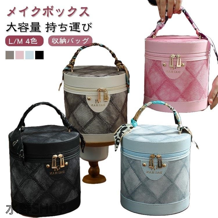 【リボン付き】 バケツバッグ 大容量 革 メイクボックス 持ち運び 化粧道具 コスメポーチ ミラー 化粧品収納ボックス 化粧箱 整理簡単 高級感 鏡付