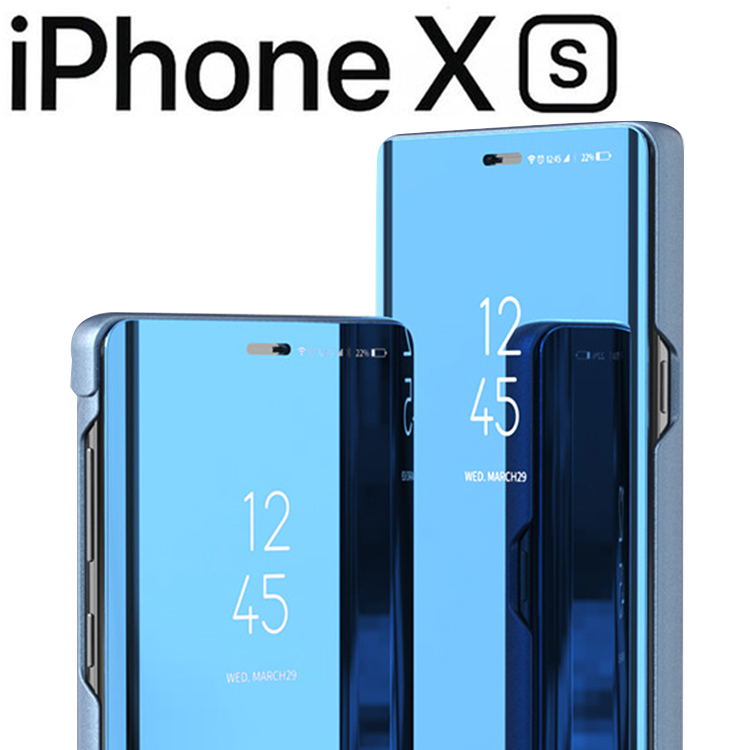i Phone XS ケース ミラー カバー 美しい 光沢 半透明 きれい スタンド機能 耐衝撃 スマホカバー 【適応機種】 i Phone XS 【商品名称】 ミラー光沢 ハイブリット 手帳 ケース 【素材】 合皮レザー&PC 【カラー】 ブルー パープル ブラック ピンク ゴールド シルバー 【商品説明】 表面はミラーコーティングが施されており、簡易な鏡代わりとしてもお使い頂けます。 スリムかつ綺麗な仕上がりのケースとなっており、スタンド機能など備えております。 ◎半透明な仕上がりなので、扉を開かなくても画面の表示を確認できます。(外光が強い場合見えない事があります) ◎端末にピッタリとフィットしているので、ボタン操作が違和感なく行えます。