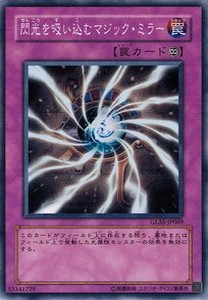 カード名:閃光を吸い込むマジック・ミラー 収録:グラディエイターズ・アサルト 品番:GLAS-JP069 レアリティ:ノーマル 永続罠 このカードがフィールド上に存在する限り、 フィールド上・墓地で発動する光属性モンスターの効果は無効化される。