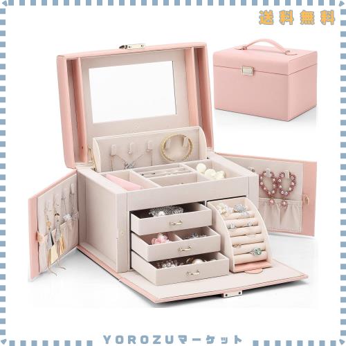 ■Vlando ジュエリーボックス 収納 アクセサリーケース 大容量の高級宝石箱 プレゼント メイクボックス ミラー 鏡付き ピアス ネックレス