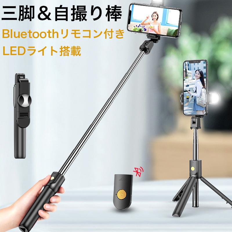セルカ棒 三脚 i Phone16e Bluetooth LEDライト 自撮り棒 i Phone 長い 三脚 ミラー 付き リモコン付き 5段階伸縮 折り畳み 軽量 旅行 コンパクト Android対応