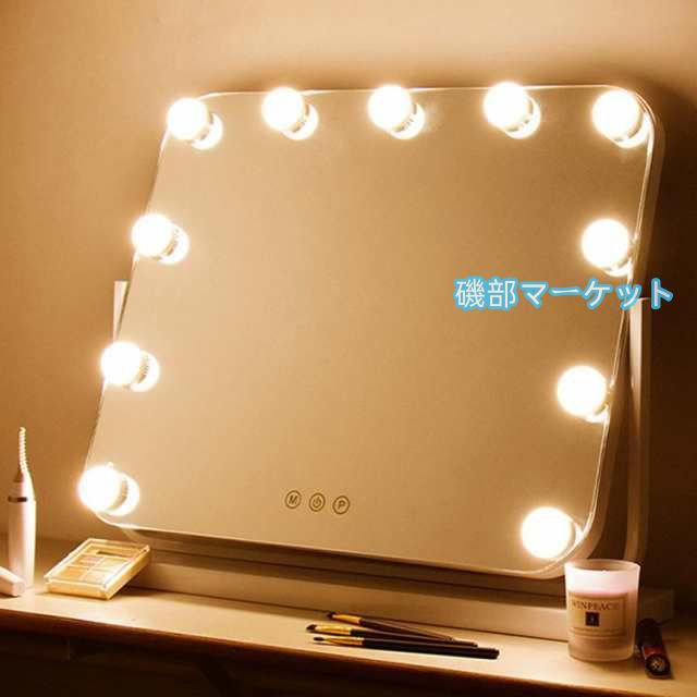 ■卓上ミラー 大きい led おしゃれ ライト付き ミラー タッチ操作 調光調色 化粧鏡 LEDメイクミラー ハリウッドミラー 11球 照明 メイク ド
