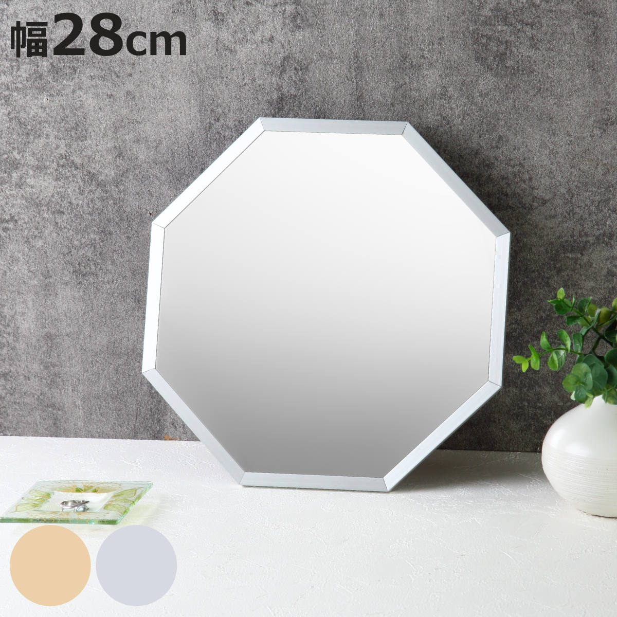 ■ウォールミラー M 八角形 スタンド付き 28×28cm オクタム 日本製 スタンドミラー ( スタンドミラー 卓上 ミラー 鏡 壁掛け ウォールミ