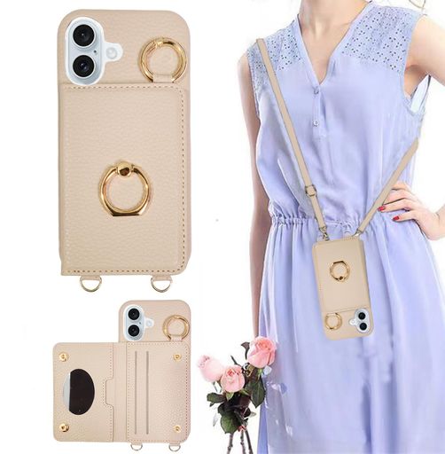 ■IPHONE 16 用 ケース ショルダー ストラップ タイプ かわいい おしゃれ PUレザー ミラー 鏡 背面手帳型 FOR スマホケース あいふおん16ケ