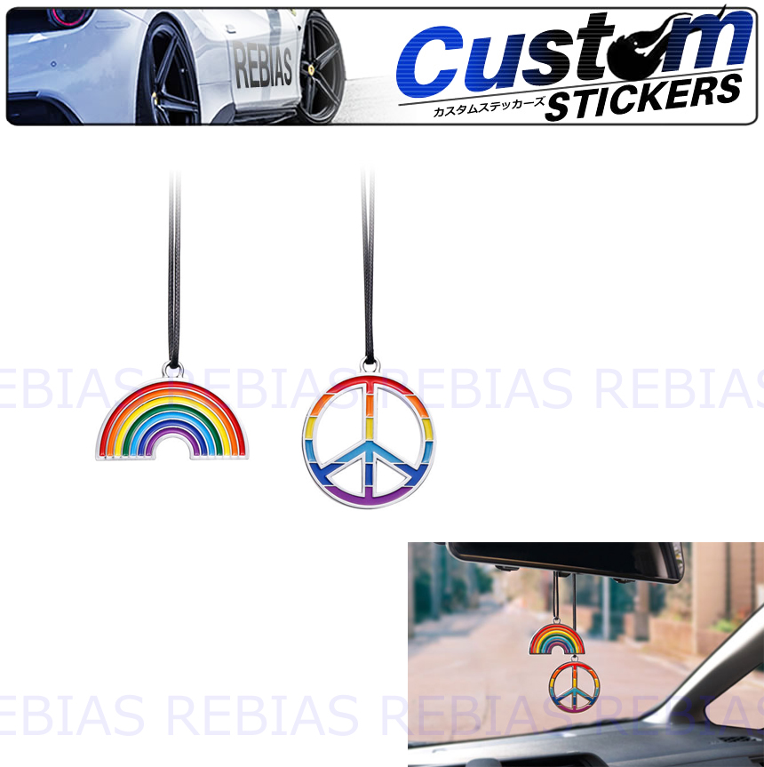 ■虹色 ミラー チャーム レインボー ピースマーク カラー エンブレム カスタム インテリア