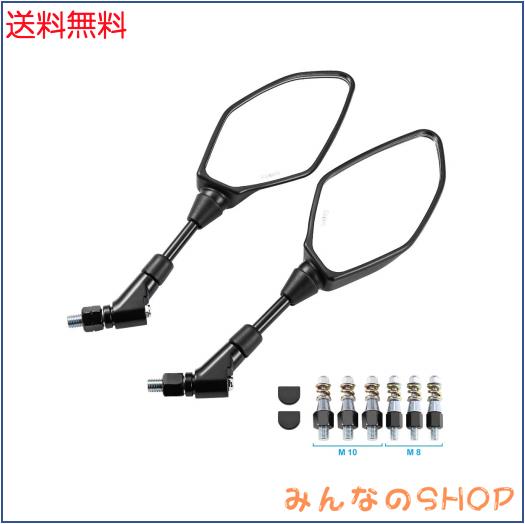 ◆商品名:KEMIMOTO バイク ミラー 汎用 左右セット 8MM 10MM 逆/正ネジ 8個 オートバイ ミラー 川崎 PCX GROM Z125 MT-07 MT-09 対応 凸面鏡