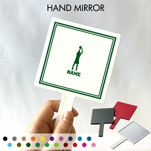 ■バスケ3 名入れ手鏡 コンパクトミラー メイク道具 携帯ミラー ハンドミラー スクエア シンプル 可愛い コスメ 美容 ミラー 鏡 バスケッ