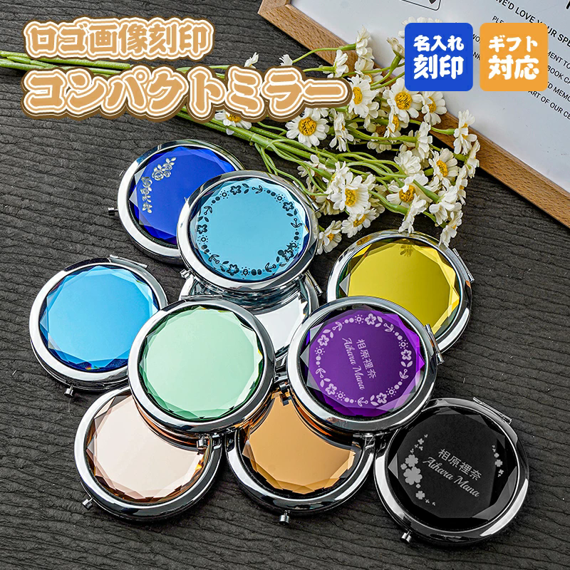 ■コンパクトミラー 名入れ ロゴ画像刻印 名入れ刻印 名入れ ミラー キラキラ クリスタル化粧鏡 ギフト対応 プレゼント ギフト 誕生日プレ