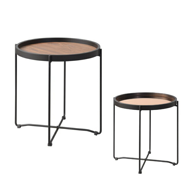 ■ラウンドトレーテーブルS サイドテーブル トレー ミラー天板 ミラー 壁掛け 折りたたみ可 天板取り外し可 丸型 Sサイズ ブラウン ゴール