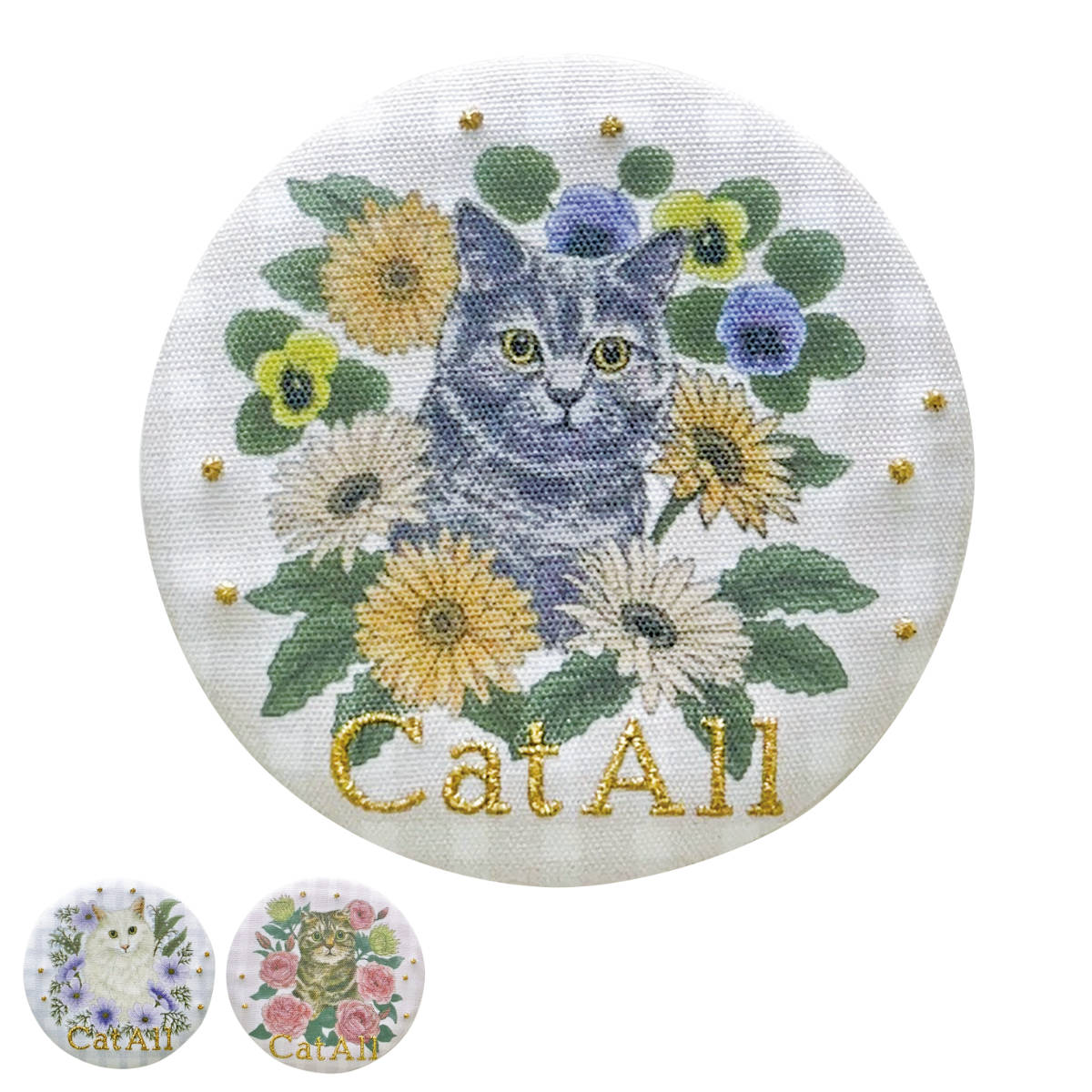 ■ミラー キャットオール 刺繍 ポケットミラー ( 鏡 小さい 携帯 コンパクト ハンドミラー メイク直し お直し 猫 ねこ 動物 コンパクトミ