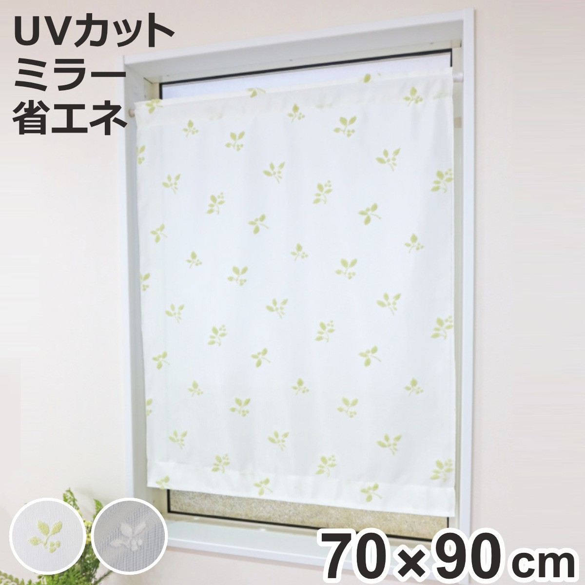 ■レースカーテン リーフ柄 小窓 UVカット ミラーレース 70×90cm 省エネ ( 小窓カーテン カーテン レース 既製品 洗えるカーテン ミラー