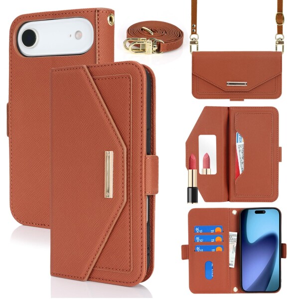 ■対応 iphone air ケース 手帳型 ショルダー 鏡 いphoneair スマホケース ストラップ付き ミラー カード収納 財布 iphone air カバー クロ