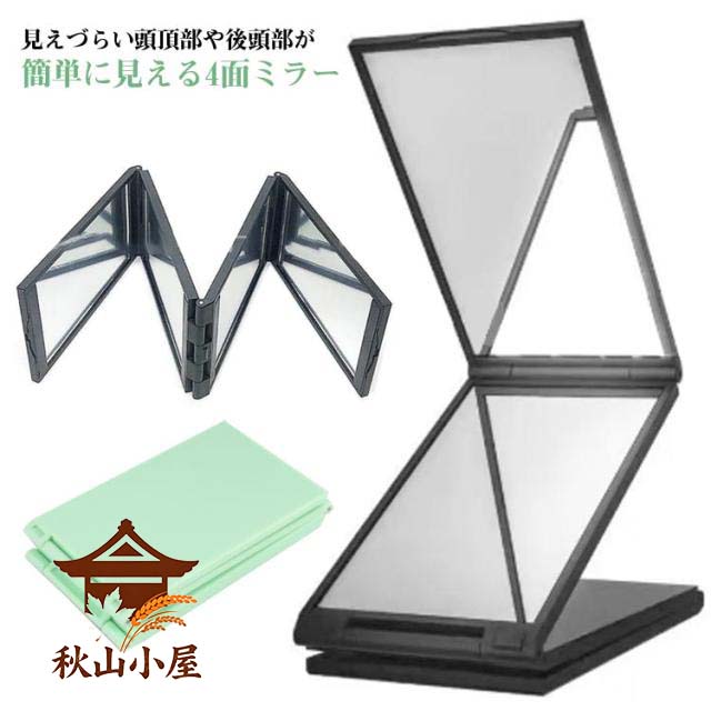 後頭部や頭頂部が確認しやすい ミラー メイク 折りたたみミラー 化粧鏡 携帯用 後頭部や頭頂部が確認しやすい 手鏡 4面鏡 ハンドミラー 多面鏡 コンパクトミラー 髪染め どこでもミラー 四面鏡 4面鏡 折りたたみ鏡 メイクミラー