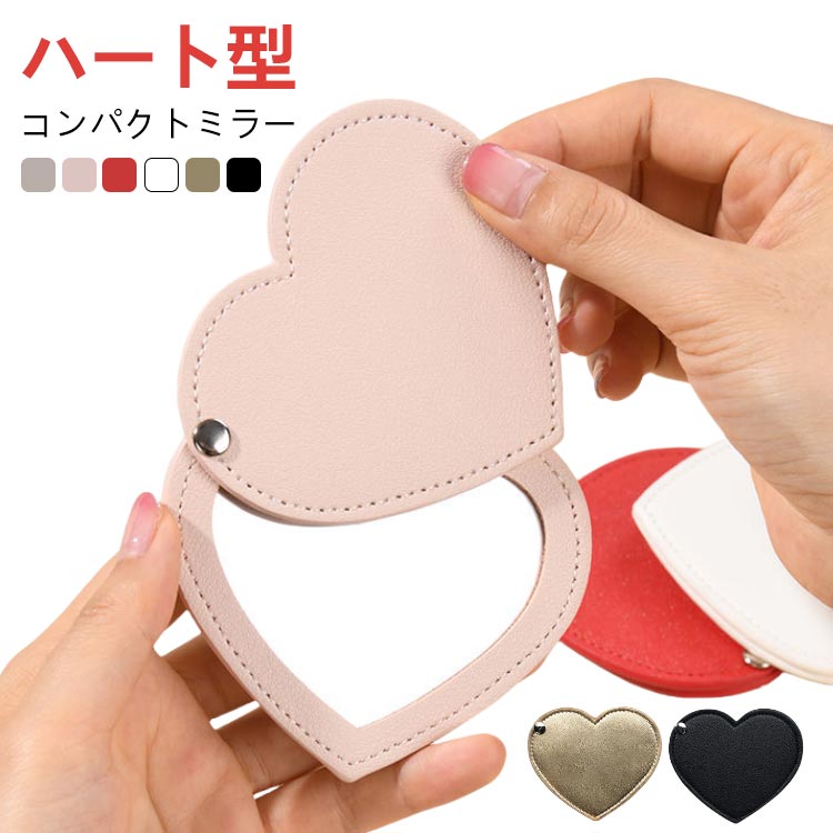 ■ミラー ハート ハート型 女性 折りたたみ おしゃれ 手鏡 コンパクト 化粧 鏡 高見え スライド ハンドミラー かわいい コンパクトミラー