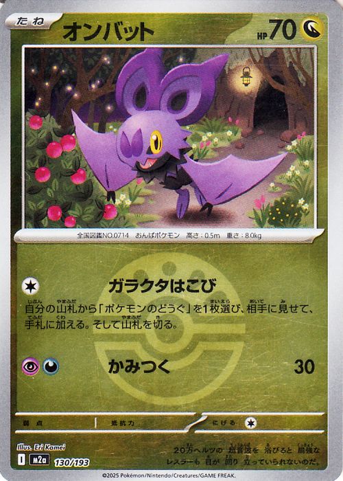 ■ポケモンカードゲームMEGA M2a ハイクラスパック MEGAドリームex オンバット ミラー(モンスターボール柄) (130/193) ポケカ 竜 たねポ