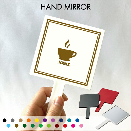 ■「コーヒー」名入れ手鏡 コンパクトミラー メイク道具 携帯ミラー ハンドミラー スクエア シンプル 可愛い コスメ 美容 ミラー 鏡 角型 c