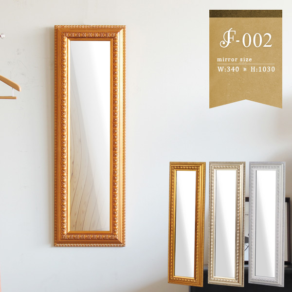 ■ウォールミラー アンティーク ゴールド 35cm 壁掛けミラー 姿見 鏡 壁掛け ミラー ロココ調 幅34cm 高さ103cm F-002WM2090 ◇
