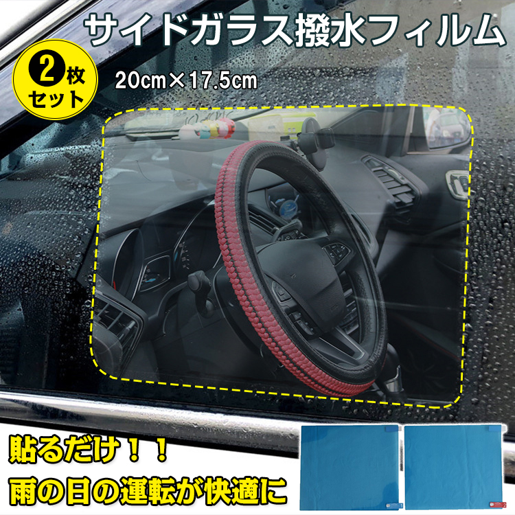 ■サイドガラス 撥水 防水 フィルム 車 窓 ミラー 雨 雪 安全 運転 視界 事故防止 簡単取付 2枚セット ee255