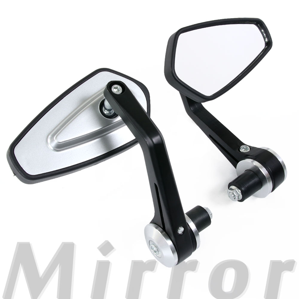 ■汎用 スリムバーエンドミラー ポリゴンタイプ シルバー マットブラック 左右セット バイク バイクミラー オートバイ ミラー カスタム パ