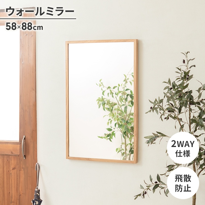 ■【値下げ】ウォールミラー 鏡 ミラー 壁掛けミラー 洗面ミラー 58×88cm 四角 長方形 飛散防止 かがみ ミラー ナチュラル おしゃれ