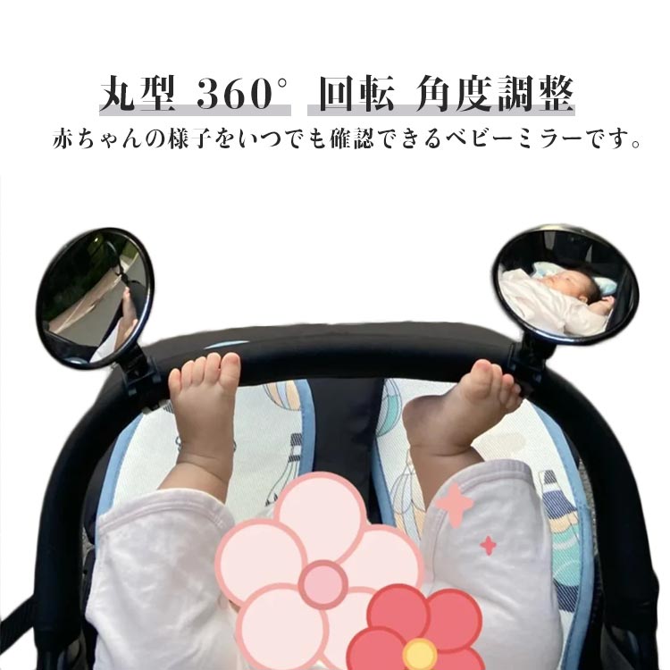 ■ベビーミラー 車 ベビーカー ミラー 鏡 自転車 ミラー アクセサリ 丸型 360°回転 角度調整 コンパクト 後ろ向き 後方確認 凸鏡 鏡 バッ