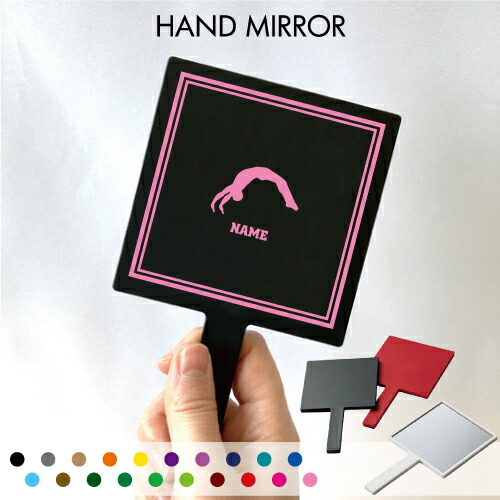 ■「体操・マット1」名入れ手鏡 コンパクトミラー メイク道具 携帯ミラー ハンドミラー スクエア シンプル 可愛い コスメ 美容 ミラー 鏡