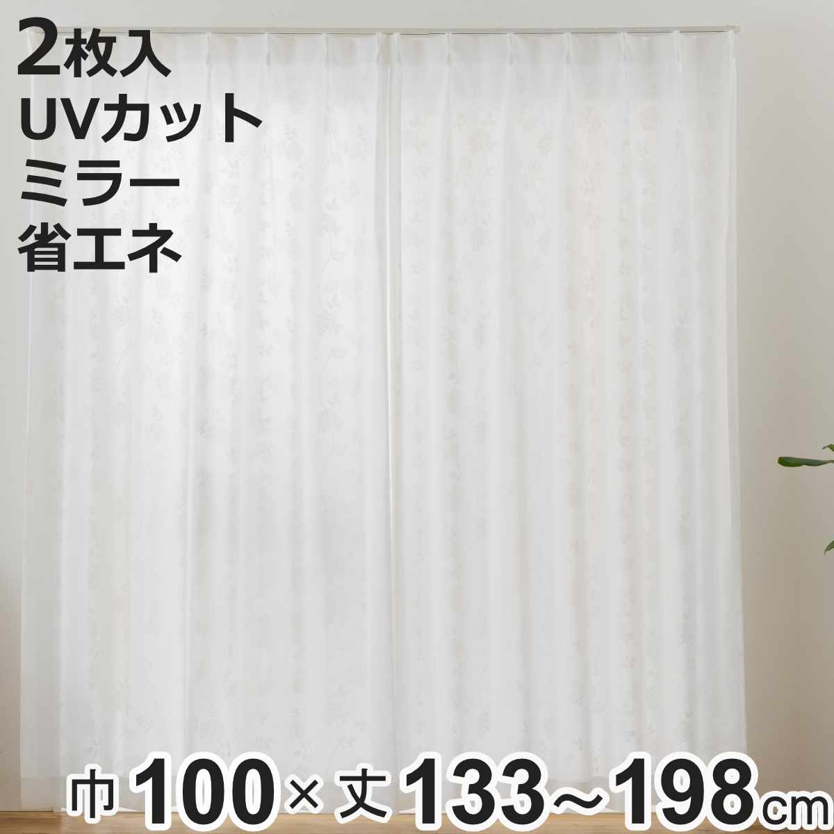 ■カーテン UVカット ミラー アナベル 100×133〜198cm 2枚 省エネ ( ユニベール レース 既製品 レースカーテン 洗える インテリア 1.5倍