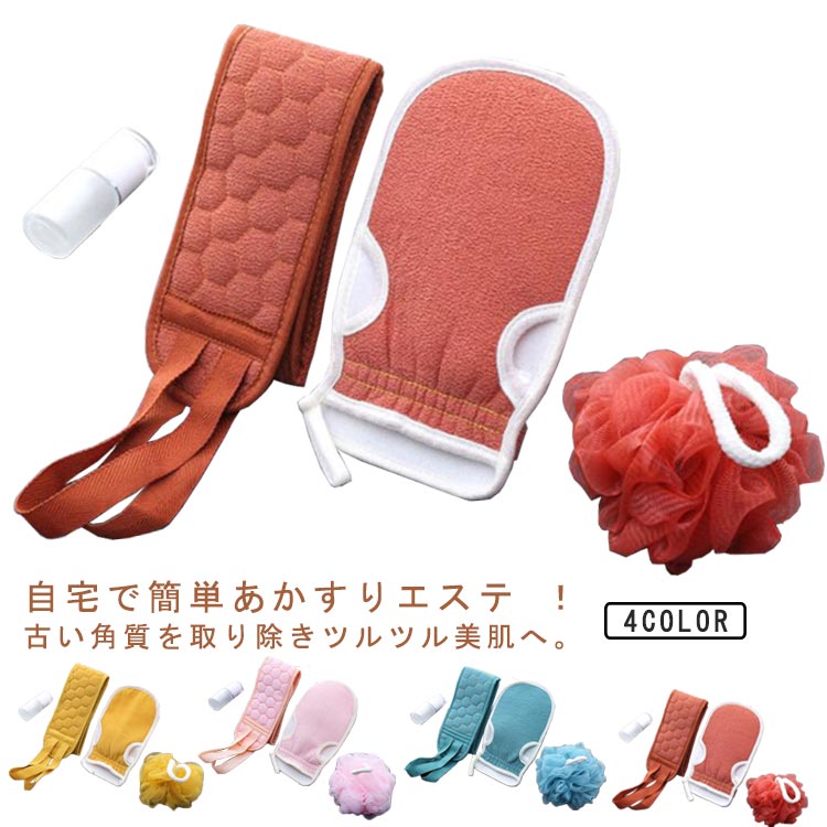 ■3点セット スポンジ ミトン 垢すり グローブ タオル 3点セット グッズ 美肌 バスグッズ お風呂 角質除去 アカスリ ボディケア 背中 毛穴